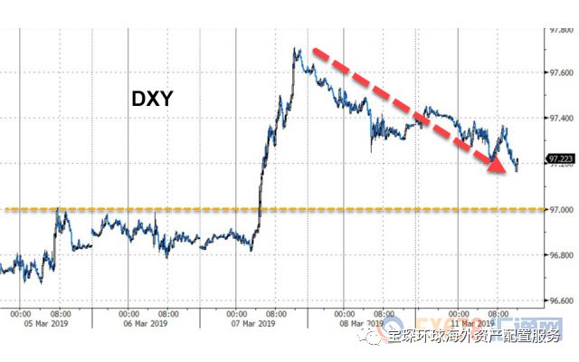 周一(3月11日)美元走低,因美国零售销售数据喜忧参半;英镑兑美元涨逾百点,英国首相特里莎·梅紧急赶往斯特拉斯堡,为避免她的脱欧协议在英国议会再次受挫做最后的努力。金价下跌,进一步远离上一交易日短暂升穿的重要关口1300美元,因美国零售销售强于预期,缓解了对经济放缓的担忧,令全球股市在上周下跌后反弹。油价涨逾1%,受沙特能源部长法力赫言论提振,他表示石油输出国组织(OPEC)主导的减产行动不太可能在6月前结束。